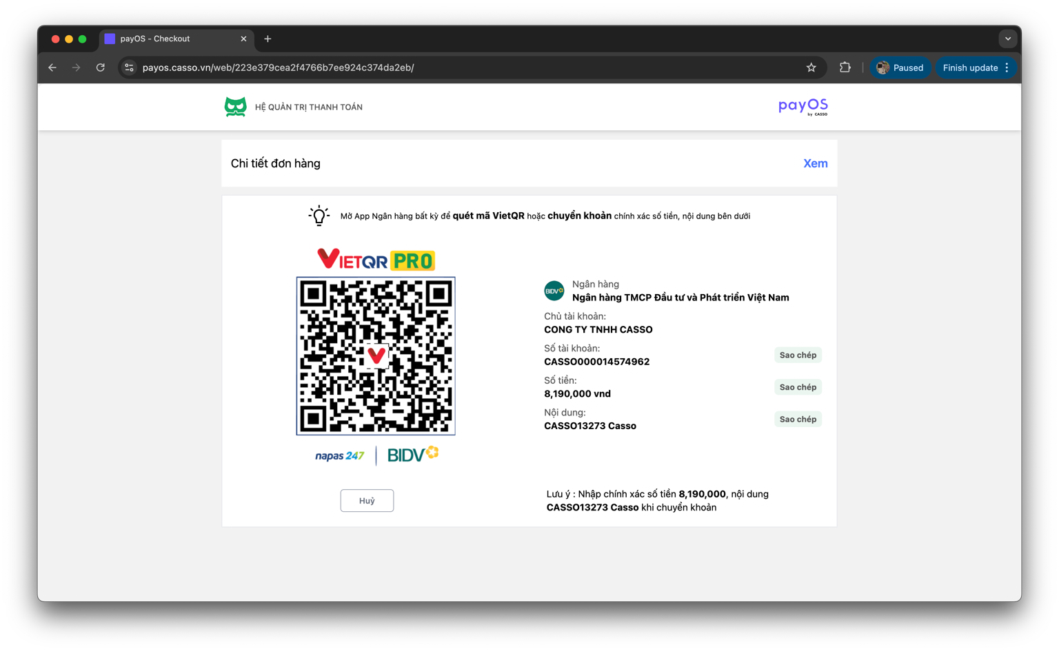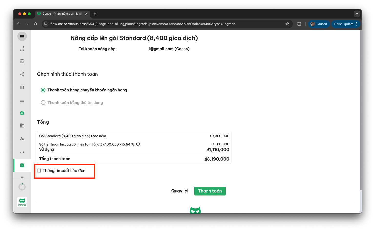 Để thanh toán cho Casso sau khi lựa chọn được gói phù hợp, bạn hãy tham khảo hướng dẫn dưới đây: